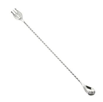 Барная ложка-вилка Cocktail design | Коктейль Дизайн с эмблемой F 40 см. Барная ложка с наконечником вилкой. Используется для накалывания долек фруктов, ягод и других ингредиентов. Хорошо сбалансирована, изготовлена без сварных швов, единой металлической конструкцией.
