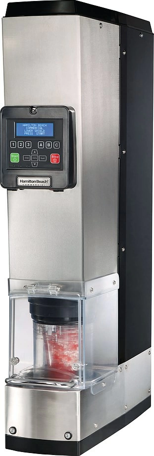 Блендер Hamilton Beach | Хамильтон Бич TRZ-119906 - Аппарат для автоматического приготовления напитков в одноразовом стаканчике оптимизирует приготовление напитков в вашем предприятии питания. Возможна установка на самообслуживание. Поможет значительно снизить стоимость приготовления напитков за счет сокращения трудозатрат, отсутствия потерь ингредиентов и чрезвычайно низкого потребления воды. Панель управления позволяет выбрать размер стакана и вид напитка, всего 9 комбинаций. Процесс приготовления чрезвычайно простой: 1. добавьте необходимые ингредиенты в стаканчик, 2. установите стаканчик в аппарат, 3. нажмите клавишу Start. Всё, что находится в одноразовом стаканчике, будет смешано до однородной консистенции без каких-либо потерь. Аппарат приготовит напиток и проведет автоматическую очистку. Объём воды для цикла мойки - 300мл. Требуется подключение к воде и к канализации. Для обновления программного обеспечения предусмотрен USB-порт.