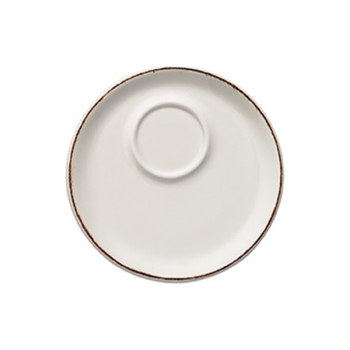 Блюдце Bonna Retro | Бонна Ретро Д=120 мм коричневый край (чашка 70654). Bonna — профессиональный твердый фарфор. В коллекции Retro контрастные цветные линии, нарисованные вручную по краю, что делает ее идеальной для повседневного ужина, в то же время она достаточно изысканная, чтобы стать ярким акцентом. Фарфор Bonna отличается своей прочностью, устойчивостью к сколам и механическим воздействиям, что делает его идеальным для профессионального использования. Все изделия можно мыть в посудомоечной машине и использовать в СВЧ-печах.