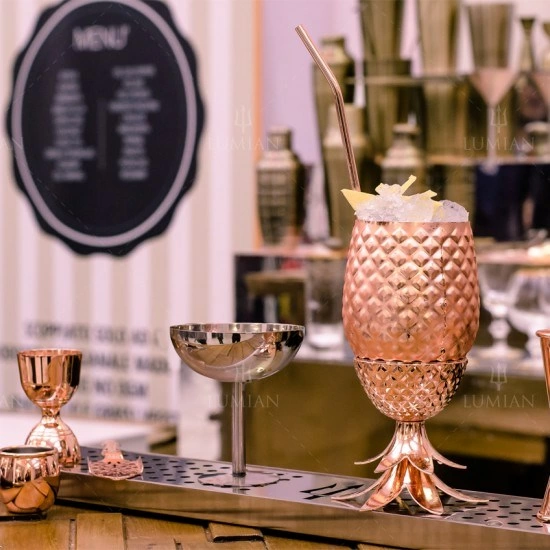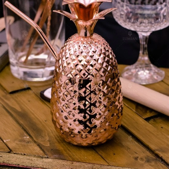 Бокал Люмиан Pineapple 500 мл медного цвета. Бокал для коктейлей "Ананас" из нержавеющей стали 18/10 с медным покрытием - обрамление, которое заслуживает ваш коктейль. Нижняя часть бокала представляет собой стакан, где вы можете приготовить коктейль, верхняя часть используется в качестве крышки, но может быть использована в качестве подставки.