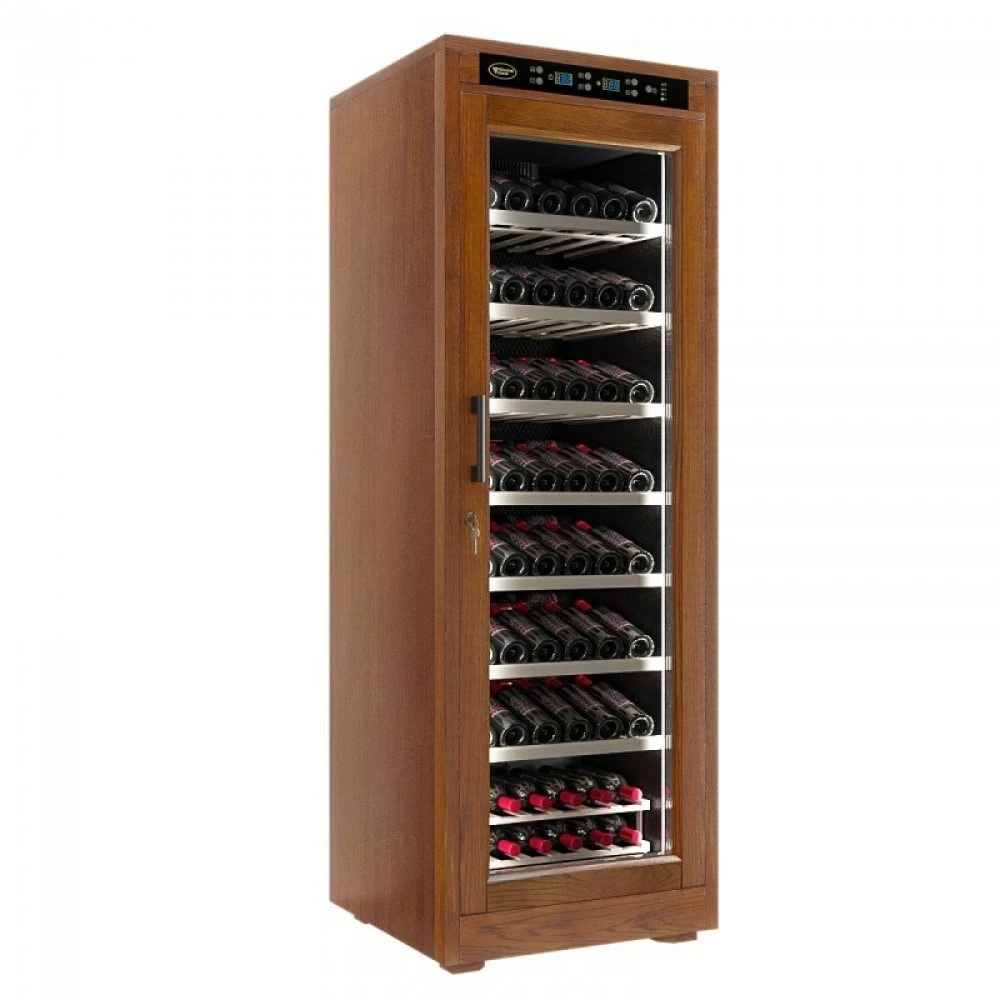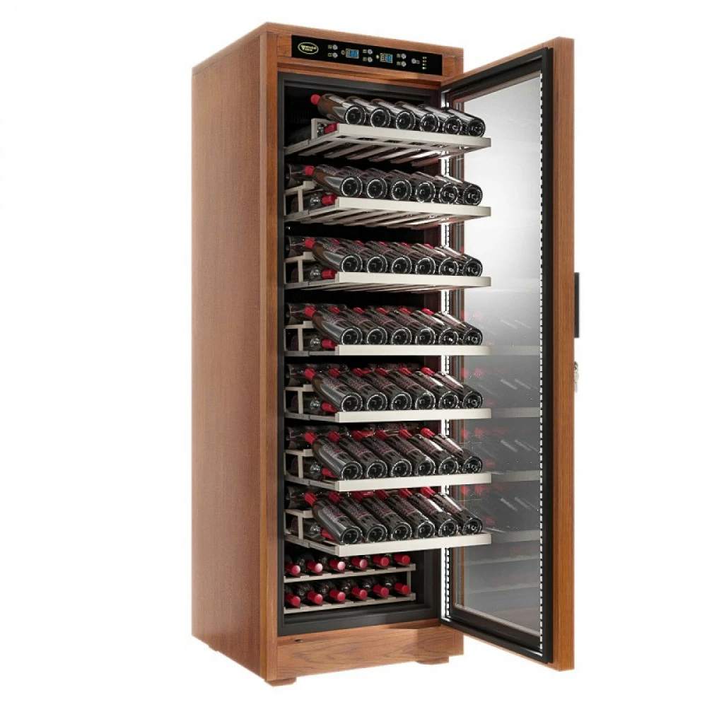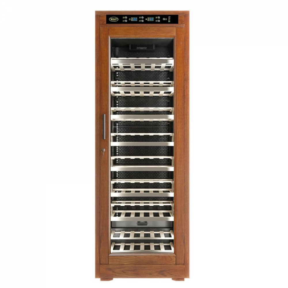 Винный шкаф ColdVine | Колд Вайн C108-WN1 (Modern). Классический винный шкаф является стильным дополнением к вашему дому и прекрасным помощником в вопросе хранения вина. Данный винный шкаф не подразумевает разделения на зоны, соответственно, вы можете разместить в нем вина только одного типа. Температурный режим может быть выставлен любой в диапазоне от +5 до +22 ˚С. Уникальная опция линейки данных шкафов - наличие цифрового контроля влажности. Тип охлаждения - компрессорный. Корпус данного винного шкафа классический из натурального дерева цвета орех (шпон дуба). В базовой комплектации имеются деревянные выкатные полки в количестве 4 штук.