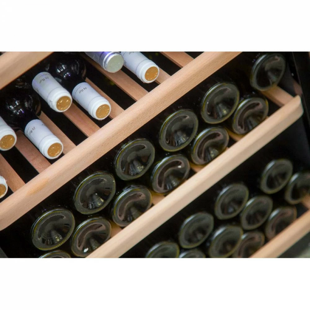 Винный шкаф ColdVine | Колд Вайн C180-KBF2. Отдельностоящий компрессорный винный шкаф. Его внушительные размеры идеально подойдут для сегмента HoReСa, а также для хранения большой винной коллекции в домашних условиях. 180 бутылок располагаются в двух отдельных зонах, с поддержанием в каждой из них идеальной температуры для хранения белых и красных вин. В зависимости от размера, объема и способа укладки бутылок, их фактическое число может отличаться. Вместимость шкафа указана с учетом размера традиционной бутылки 750 мл типа "Бордо" без упаковки. С помощью удобной сенсорной панели можно установить температуру в верхней зоне от +5°C до +12°C, а в нижней от +12°C до +20°C.