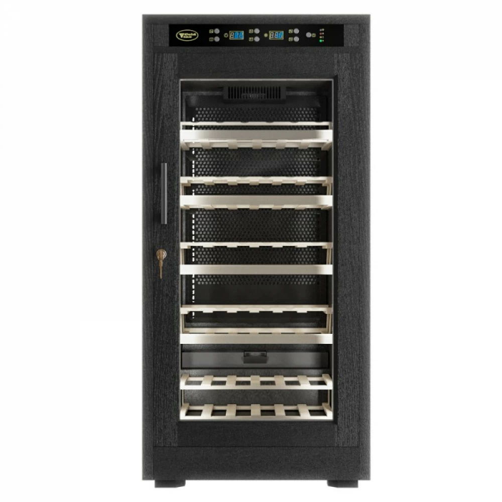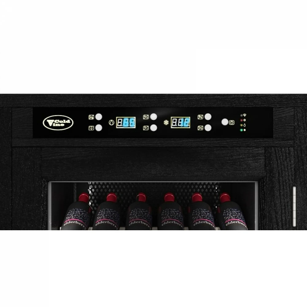 Винный шкаф ColdVine | Колд Вайн C66-WB1 (Modern). Классический винный шкаф является стильным дополнением к вашему дому и прекрасным помощником в вопросе хранения вина. Данная модель является отдельностоящей, а это означает что у вас появится не просто многофункциональный помощник, но также и стильное дополнение к вашему интерьеру. Данный винный шкаф не подразумевает разделения на зоны, соответственно, вы можете разместить в нем вина только одного типа. Температурный режим может быть выставлен любой в диапазоне от +5 до +22 ˚С. Уникальная опция линейки данных шкафов - наличие цифрового контроля влажности. Тип охлаждения - компрессорный. Корпус данного винного шкафа выполнен из натурального дерева черного цвета (шпон дуба). В базовой комплектации имеются деревянные выкатные полки в количестве 5 штук.