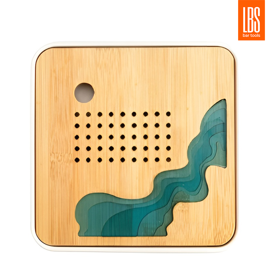 Чабань квадратная LBS 20х20х2 см белый поддон. Чабань квадратная c белым пластиковым поддоном и бамбуковой крышкой с прорезями и вставкой из эпоксидной смолы зеленого цвета.