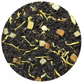 Приятное впечатление от композиции создается и благодаря аппетитному желто-оранжево-черному оттенку сухой смеси. Акцент вкуса делается на тропических фруктах, дарящих напитку неповторимую сладость и фруктовое послевкусие. Дурманящий аромат саусепа и манго отлично вписывается в созданный коктейль. Напиток прекрасно расслабляет, поднимает настроение. Глубокий янтарный оттенок отлично сочетается с пряным ароматом, а терпко-сладкий вкус только дополнит эту красоту. Состав: Чай черный индийский, кусочки ананаса, кусочки папайи, лепестки календулы, аромат саусепа и манго.