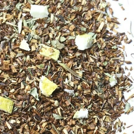 Состав: Ройбос, листья мяты, кусочки лимона с цедрой.