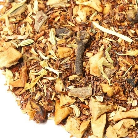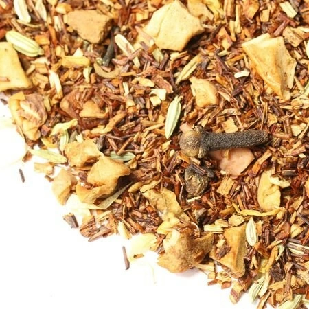 Состав: Ройбос, кусочки яблок, кусочки корицы, фенхель, гвоздика, лепестки календулы, аромат свежей выпечки