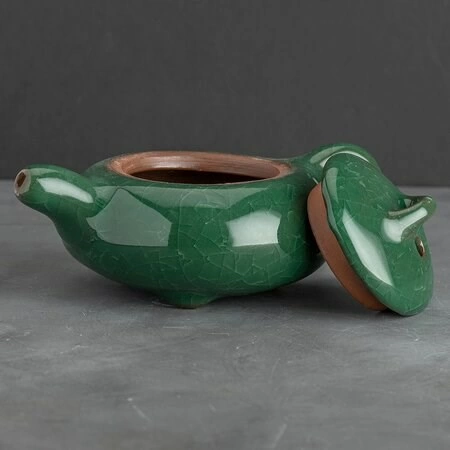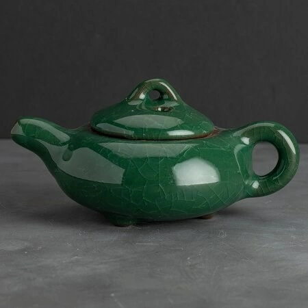 Чайник Колотый Лёд LBS 120 мл зелёный. Маленький заварочный чайник округлой приплюснутой формы, из керамики, покрытой глазурью.