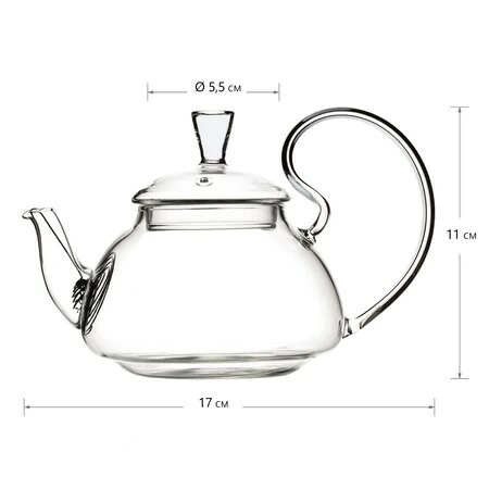 Чайник Ландыш LBS 400 мл - заварочный чайник грушевидной приплюснутой формы, с изогнутым носиком и высокой изогнутой ручкой, из жаропрочного стекла, со спиралевидным ситечком в носике.