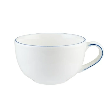 Чашка чайная Bonna Retro | Бонна Ретро 250 мл синий край (блюдце 70922, 70915). Bonna — профессиональный твердый фарфор. В коллекции Retro контрастные цветные линии, нарисованные вручную по краю, что делает ее идеальной для повседневного ужина, в то же время она достаточно изысканная, чтобы стать ярким акцентом. Фарфор Bonna отличается своей прочностью, устойчивостью к сколам и механическим воздействиям, что делает его идеальным для профессионального использования. Все изделия можно мыть в посудомоечной машине и использовать в СВЧ-печах.