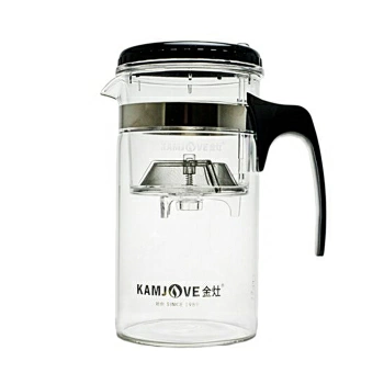 Чайник заварочный гунфу Kamjove | Камджови 1000 мл, стекло. Конструкция типота состоит из корпуса, представляющего собой высокий прямой сосуд цилиндрической формы с треугольным носиком в верхней его части из жаропрочного стекла с удобной пластиковой ручкой и колбы для заваривания с механизмом слива из высококачественного пластика. Пластиковая крышка фиксируется защелкой и оснащена кнопкой, при нажатии которой настой сливается из колбы.