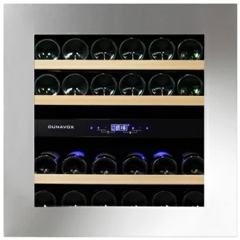 Винный шкаф Dunavox | Дунавокс Build-IN DAB-25.62DSS.TO. Эксклюзивный компрессорный винный шкаф с двумя зонами на 25 бутылок. Его элегантный внешний вид, дверь в раме из нержавеющей стали с технологией Touch Open делают его презентабельным в современном кухонном гарнитуре без ручек. Дверь открывается нажатием на левый верхний угол. Бутылки размещаются на крепких деревянных полках в потрясающем голубом освещении. Винный шкаф DAB-25.62DSS.TO оснащен сигнализатором открытой двери и функцией шаббат. Данная модель встраивается в кухонный гарнитур в соответствии с определенными параметрами: ниша для встраивания должна иметь размеры, которые позволят разместить внутри винный шкаф габаритами 595x592x545 (ВхШхГ, мм). Таким образом, высота ниши для встраивания может варьироваться от 589 мм до 593 мм, тогда как минимальные размеры ширины будут равны 555 мм, глубины - 545 мм. После установки данной модели в нишу , дверца располагается таким образом, что между гарнитуром и винным шкафом не остается никаких зазоров, потому как размеры дверцы чуть больше размера самой конструкции - высота 590 мм, ширина 592 мм. Обратите внимание на то, что это полностью встраиваемая модель наряду с кухонными шкафами и бытовой техникой, и не предназначена для использования как отдельно стоящий винный шкаф.