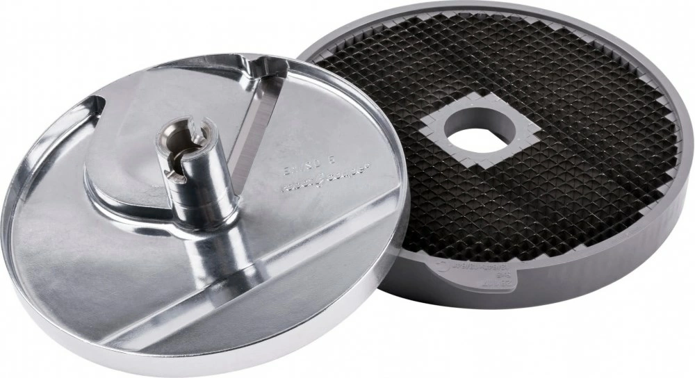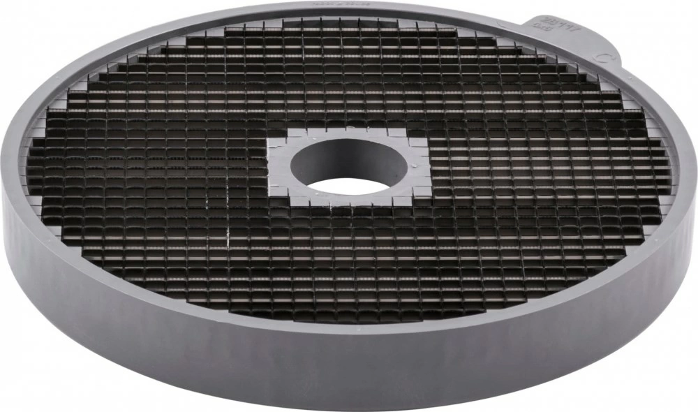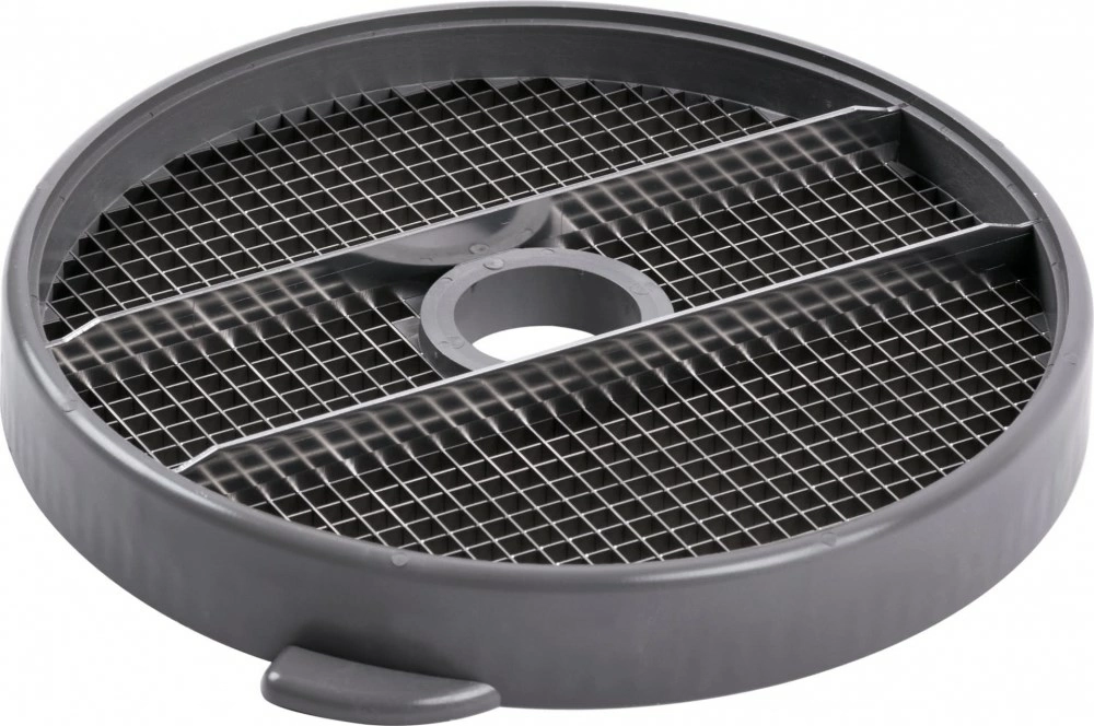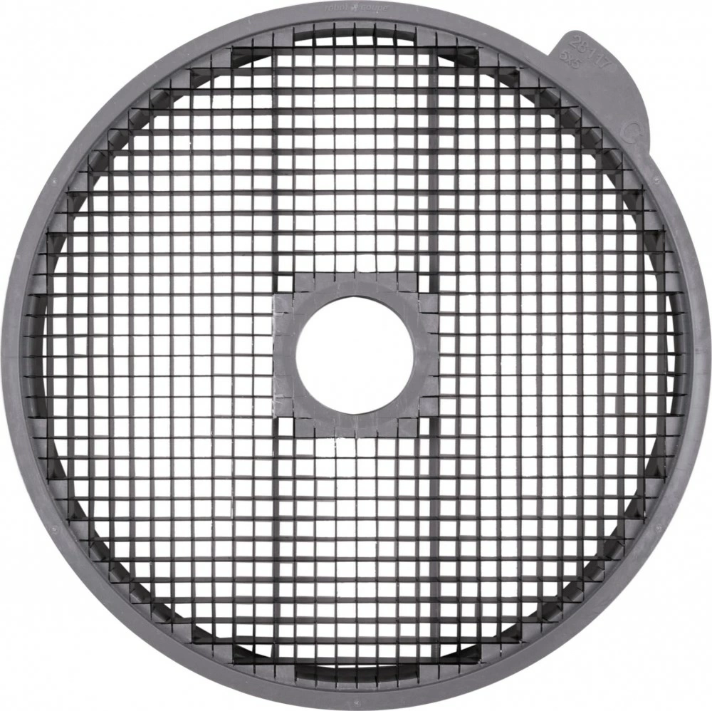 Диск-кубики Robot Coupe | Робот Купе 28110 (5х5х5 мм) совместим с овощерезками CL50, CL50 Gourmet, CL50 Ultra, CL52, CL55, CL60 и кухонными процессорами R502, R652. Предназначен для нарезания мелкими кубиками разных овощей, фруктов, твердого сыра и прочих продуктов для приготовления салатов, закусок и других блюд. В комплектации решетка и режущий диск. Устанавливается в рабочий отсек оборудования на вал двигателя. После работы легко снимается и очищается без использования дополнительных инструментов. Для очистки решётки рекомендуется использовать комплект 39881.