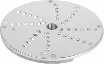 Диск-терка Robot Coupe | Робот Купе 28073 (4 мм) совместим с овощерезками CL50, CL50 Gourmet, CL50 Ultra, CL52, CL55, CL60 и кухонными процессорами R502, R652. Предназначен для шинкования стружкой средней величины овощей, фруктов, твердого сыра, шоколада и прочих продуктов питания для приготовления различных блюд. Устанавливается в рабочий отсек оборудования на вал двигателя. После работы легко снимается и очищается без использования дополнительных инструментов.