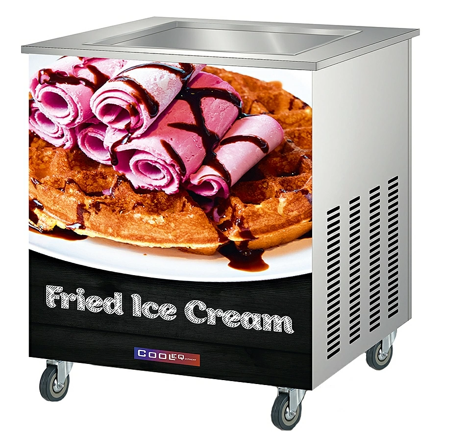 Фризер для жареного мороженого Cooleq | Кулек IF-48 – устройство, позволяющее быстро приготовить холодный десерт из свежей ягодно-фруктовой массы, сиропа или смеси для изготовления мороженого. Технология приготовления: смесь мгновенно застывает на охлаждаемой поверхности и сворачивается в рулет специальной лопаткой. Модель оснащена квадратной охлаждающей поверхностью. Высота борта: 20 мм. В комплект поставки входят 2 металлических лопатки.