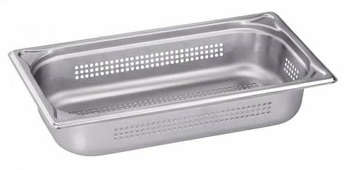 Перфорированная гастроемкость Хуракан GN-P 2/3-65 Используются для приготовления блюд на пару и в пароконвектомате. Пар равномерно распределяется по всему объему рабочей камеры, и продукты готовятся быстрее, а также при выпечке хлебобулочных и кондитерских изделий, бланшировании, процеживании и сушке продуктов.