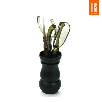 Инструменты для чайной церемонии 032 LBS. Набор чайных принадлежностей из полупрозрачного пластика, включает чайную иглу, пинцет, лопатку, совочек в подставке в форме вазы из темного дерева.