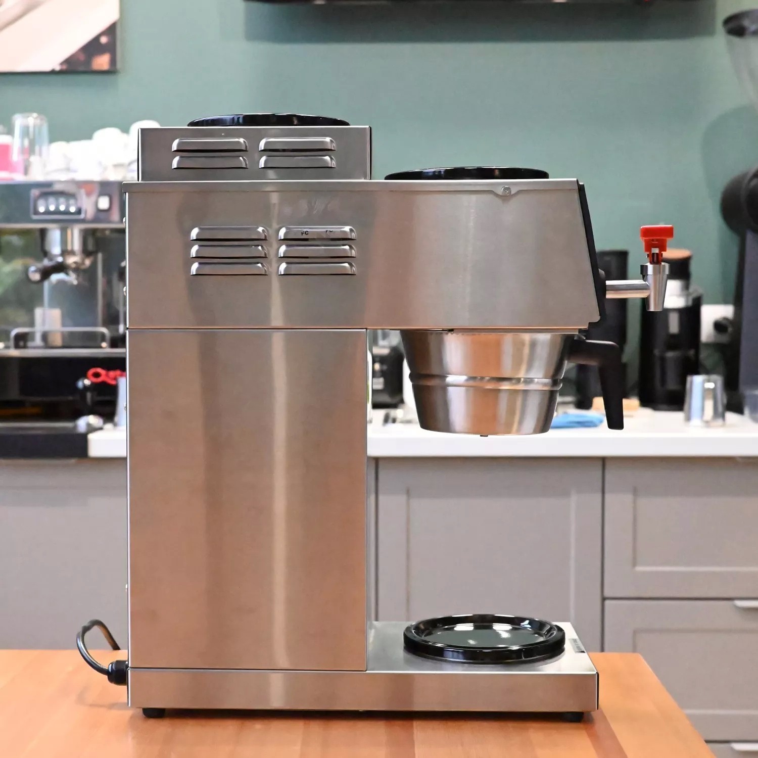 Капельная кофеварка WPM CB-303GT станет отличным дополнением в ресторане, кафе или гостинице, где необходим надёжный источник кофе. Несмотря на то, что температура не регулируется, устройство заваривает кофе при температуре от 88-93 С, что обеспечивая каждый раз насыщенный и стабильный вкус. Эта модель предназначена для интенсивного использования. Кофеварка CB-303GT из нержавеющей стали оснащена 3 подогревателями для чашек, 1 нижним и 2 верхними, так что у вас всегда будет свежий кофе, пока варится следующая порция. Она занимает минимум места на столешнице благодаря компактной ширине. Независимые элементы управления подогревом и завариванием позволяют легко настроить кофеварку в соответствии с вашими потребностями. Переключатели позволяют легко заваривать и подогревать кофе, а индикаторы показывают, когда устройство заваривает или готовится к завариванию.