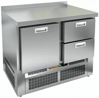 Холодильный стол Hicold | Хайколд GNE 12/TN предназначен для охлаждения, краткосрочного хранения скоропортящихся продуктов и обработки задействованных в приготовлении блюд ингредиентов. В активе универсального стола компактные размеры, продуманная компоновка, экономичность и высокая холодопроизводительность. Особенности среднетемпературной модели: нижнее расположение агрегата; сплошная распашная дверка; 2 емких выдвижных ящика; облицовка гигиеничным нержавеющим сплавом; надежный микропроцессорный блок; объем: 350 л; влагозащищенный клавишный выключатель; фактические температуры: -2°С....+10°С; самодоводящие петли; мощность: 150 Вт; автоматическая оттайка; термоизоляция вспененным полиуретаном; высокий климатический класс; регулируемые опоры; принудительная вентиляция; габариты: 1000х700х850 мм.