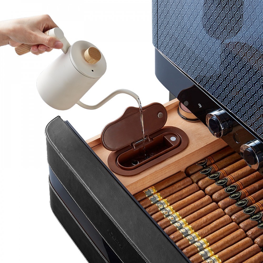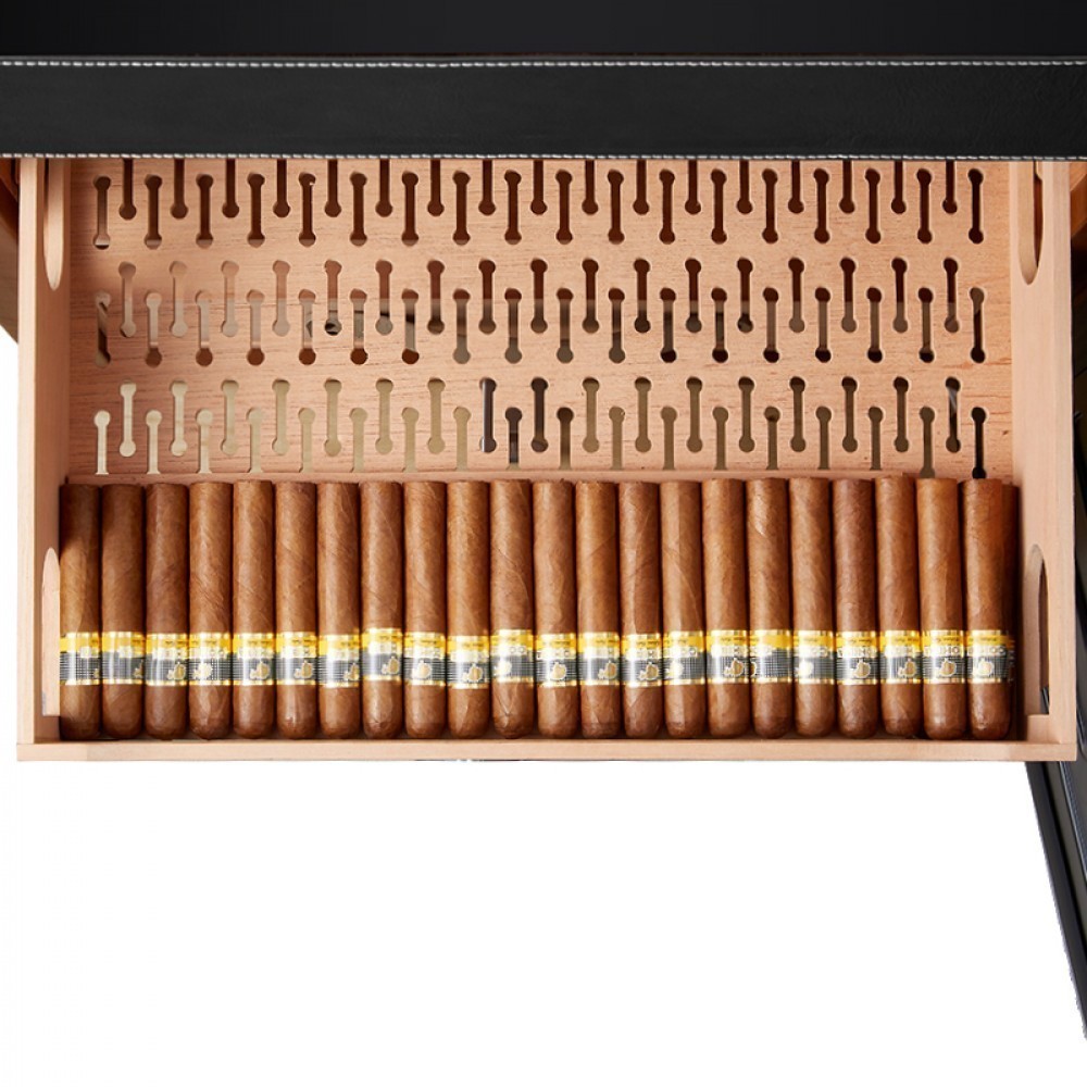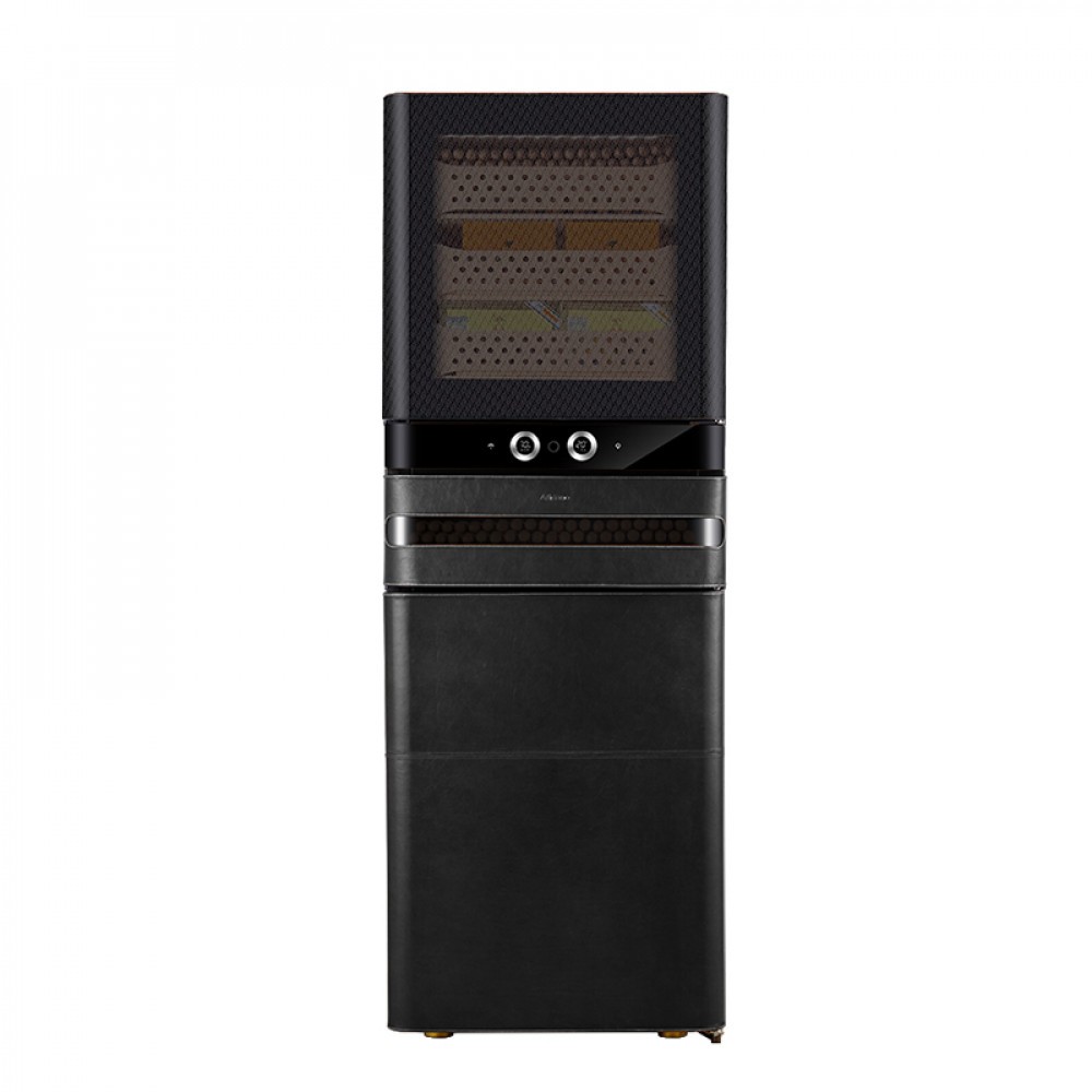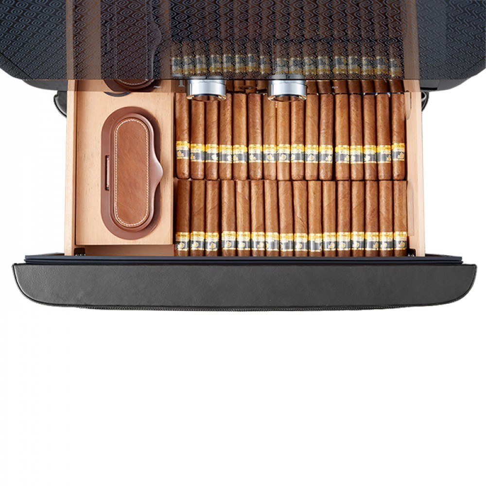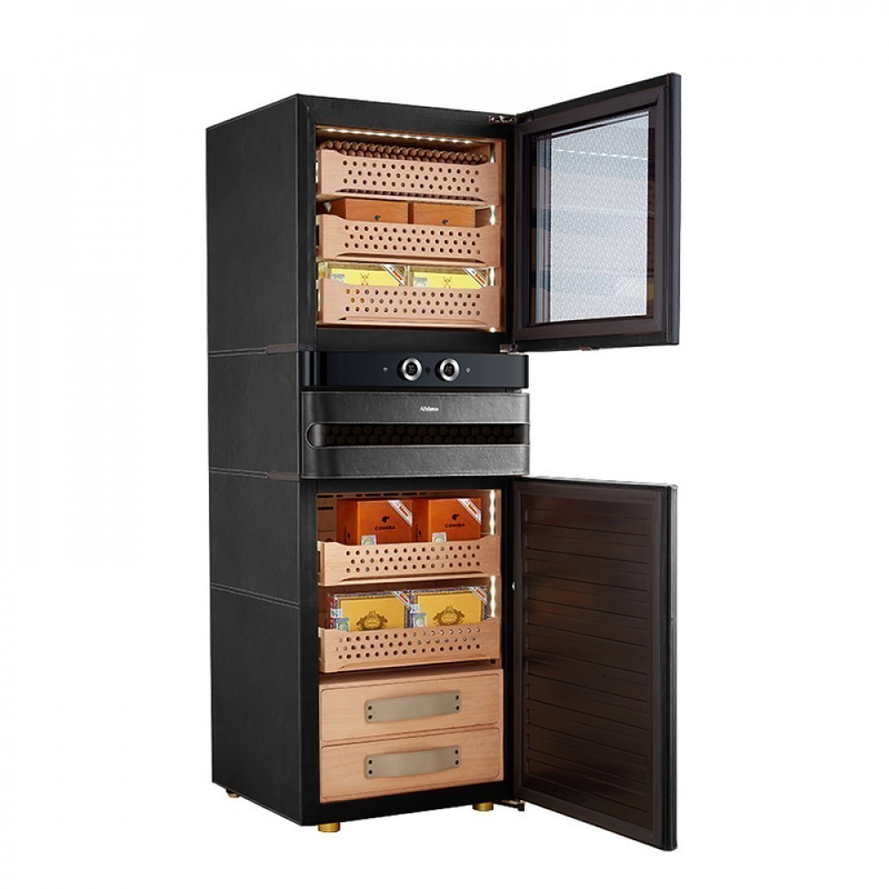 Хьюмидор для сигар Afidano | Афидано L6 (Чёрный оникс)— это больше, чем хранилище для сигар. Хьюмидор, в котором всё — от фактуры кожи до точной работы электроники — подчинено одной задаче: сохранить каждую сигару в идеальном состоянии и подать её в нужный момент. Корпус модели L6 вручную обтянут кожей — материалом, который не прощает компромиссов. Гладкая, плотная, с естественной фактурой, кожа проходит тщательную обработку, чтобы не просто украсить, а придать модели глубину и насыщенность. Со временем поверхность приобретает патину — индивидуальный отпечаток вашего стиля. Такой хьюмидор уместен в личном кабинете, сигарной комнате или респектабельной гостиной — в тех пространствах, где каждый предмет на своём месте. А чтобы хьюмидор надолго сохранил притягательный вид, нужно раз в месяц протирать его влажной мягкой тканью. Тогда кожа не потрескается и не растеряет лоск. Отделка из испанского кедра — неслучайный выбор. Этот благородный материал не только стабилизирует влажность, но и придаёт сигарам лёгкий древесный аромат. Пять выдвижных ящиков двигаются плавно, без зазоров и перекосов. Здесь удобно распределять коллекцию по формату, крепости или региону. Afidano L6 оснащён умной системой поддержания микроклимата HPR с точной цифровой настройкой. Панель настройки и мобильное приложение помогают управлять параметрами быстро и без лишнего шума. Стабильность без скачков — залог правильного созревания и сохранности аромата и вкуса каждой сигары в вашей коллекции. Встроенная подсветка мягко освещает содержимое, подчёркивая красоту древесины и формы сигар. Резервуар для воды удобно пополняется, а интеллектуальная система сама подскажет, когда пришло время долить воду. Для защиты предусмотрен биометрический сканер: доступ — только по отпечатку пальца. Это не просто удобно — это уважение к личному пространству владельца. Пропорции выверены, линии строгие, дизайн оригинален. Такой хьюмидор впишется в интерьер без показной демонстративности — он просто будет там, где ему положено быть.