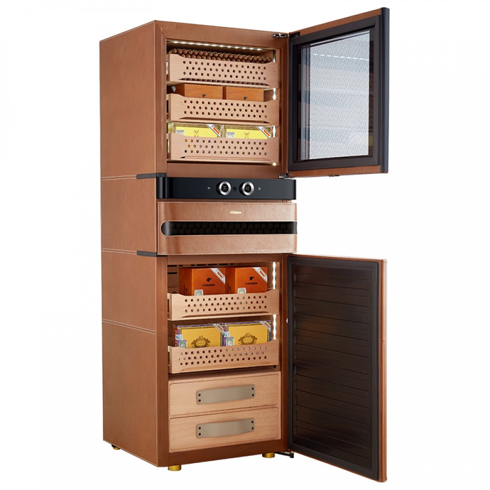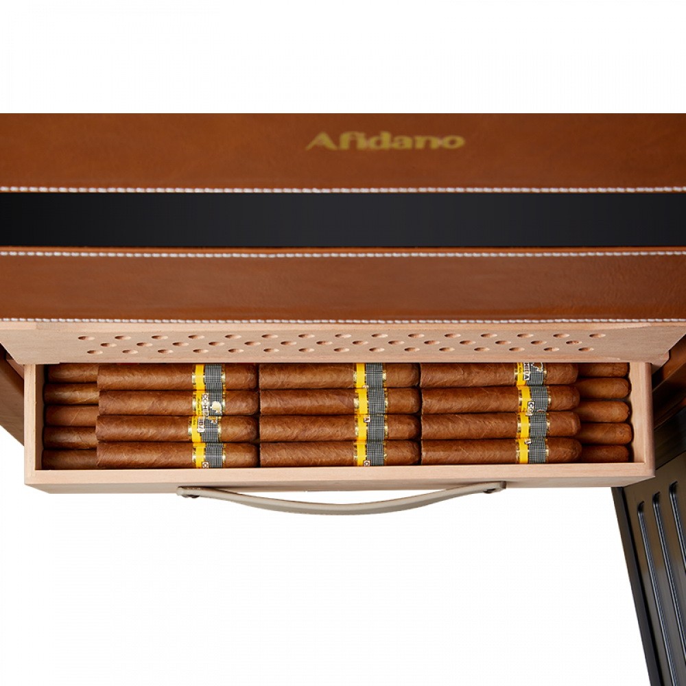 Хьюмидор для сигар Afidano | Афидано L6 (Коньячная кожа)— это больше, чем хранилище для сигар. Хьюмидор, в котором всё — от фактуры кожи до точной работы электроники — подчинено одной задаче: сохранить каждую сигару в идеальном состоянии и подать её в нужный момент. Корпус модели L6 вручную обтянут кожей — материалом, который не прощает компромиссов. Гладкая, плотная, с естественной фактурой, кожа проходит тщательную обработку, чтобы не просто украсить, а придать модели глубину и насыщенность. Со временем поверхность приобретает патину — индивидуальный отпечаток вашего стиля. Такой хьюмидор уместен в личном кабинете, сигарной комнате или респектабельной гостиной — в тех пространствах, где каждый предмет на своём месте. А чтобы хьюмидор надолго сохранил притягательный вид, нужно раз в месяц протирать его влажной мягкой тканью. Тогда кожа не потрескается и не растеряет лоск. Отделка из испанского кедра — неслучайный выбор. Этот благородный материал не только стабилизирует влажность, но и придаёт сигарам лёгкий древесный аромат. Пять выдвижных ящиков двигаются плавно, без зазоров и перекосов. Здесь удобно распределять коллекцию по формату, крепости или региону. Afidano L6 оснащён умной системой поддержания микроклимата HPR с точной цифровой настройкой. Панель настройки и мобильное приложение помогают управлять параметрами быстро и без лишнего шума. Стабильность без скачков — залог правильного созревания и сохранности аромата и вкуса каждой сигары в вашей коллекции. Встроенная подсветка мягко освещает содержимое, подчёркивая красоту древесины и формы сигар. Резервуар для воды удобно пополняется, а интеллектуальная система сама подскажет, когда пришло время долить воду. Для защиты предусмотрен биометрический сканер: доступ — только по отпечатку пальца. Это не просто удобно — это уважение к личному пространству владельца. Пропорции выверены, линии строгие, дизайн оригинален. Такой хьюмидор впишется в интерьер без показной демонстративности — он просто будет там, где ему положено быть.