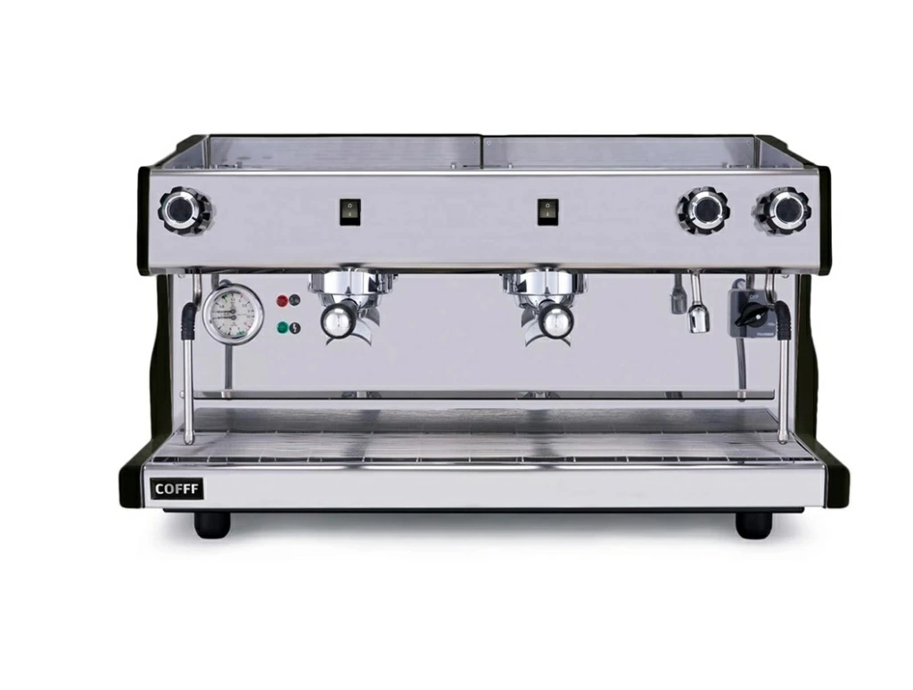 Кофемашина COFFF | Кофф LUNA 2 GR S черный. Полуавтоматическая рожковая кофемашина, 2 высокие группы. Кофемашина оснащена термосифонной системой. Комплектация: шланг подключения воды 3/8 -1шт; рожки для заваривания кофе (холдер) -2шт; стальная корзина двойная для холдера -1шт; стальная корзина одинарная для холдера -1шт; стальная корзина глухая для промывки группы -1шт; шланг для подключения канализации – 1шт; инструкция.