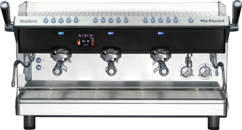 Кофемашина La Pavoni | Ла Павони DESIDERIO3VB. Серии DESIDERIO используется на предприятиях общественного питания и торговли, в офисах, а также в домашних условиях для приготовления чая, кофе и кофейных напитков. Модель оснащена 2 литыми никелированными латунными группами с вертикальной инфузионной камерой. Каплесборник с решеткой выполнен из нержавеющей стали AISI 304, бойлер - из меди. В комплект поставки входят 4 холдера: 1 с одним носиком и 3 с двумя носиками.