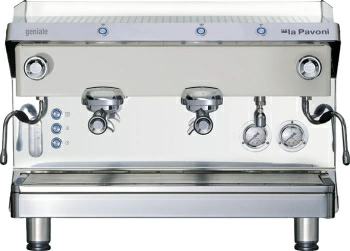 Кофемашина La Pavoni | Ла Павони GENIALE2MN. Серии GENIALE используется на предприятиях общественного питания и торговли, в офисах, а также в домашних условиях для приготовления чая, кофе и кофейных напитков. Модель оснащена 2 литыми никелированными латунными группами с вертикальной инфузионной камерой. Каплесборник с решеткой выполнен из нержавеющей стали AISI 304, бойлер - из меди. В комплект поставки входят 3 холдера: 1 с одним носиком и 2 с двумя носиками.