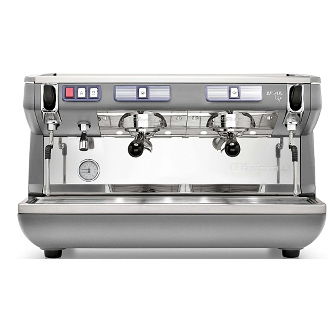 Кофемашина Nuova Simonelli |Нуова Симонели Appia Life 2 gr S metallic grey. Кофемашина полуавтомат традиционная с двумя высокими термокомпенсированными группами, предусматривает ручную дозацию кофе, кипятка и пара. Кофемашина снабжена системой предварительного заваривания SIS (гарантия идеальной экстракции при неправильной трамбовке кофе).