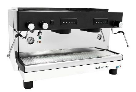 Автоматическая Кофемашина Robustezza | Робустезза STH2E черный - традиционная с 2 высокими группами. Нержавеющая сталь, медь и латунь гарантируют максимальную производительность и долгий срок службы оборудования; минимум пластиковых деталей; гарантируется превосходная термическая стабильность всей внутренней схемы; встроенная роторная помпа позволяет работать от бутылки; двухгруппные машины мощнее многих аналогов, что влияет на термостабильность и производительность. Контроль уровня воды через красный светодиод; манометр бойлера; на заводе насос настроен на 9 бар; уровень шума до 70 dB. Высокая группа - 135 мм; с вставленным холдером - 105 мм. В комплекте 2 полочки для маленьких чашек. Мультифазная, без вилки с 5 проводами, можно настроить на 3 Ф 380 В или 1 Ф 220В