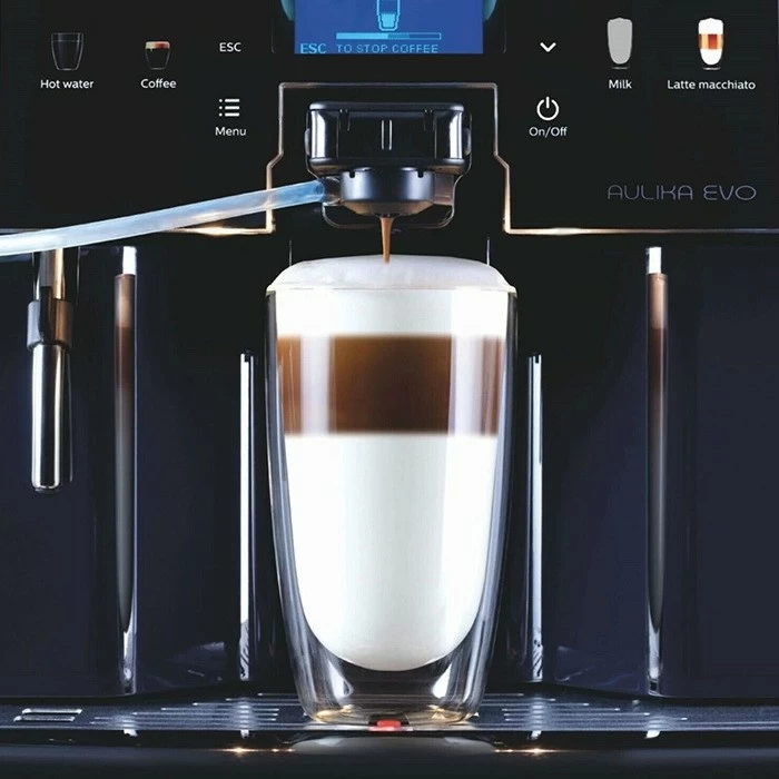 Кофемашина Saeco | Саеко Aulika EVO Focus — идеальная профессиональная кофеварка для работы в офисах и небольших ресторанах, где важна надежность и высокое качество дозирования. Благодаря новому емкостному интерфейсу с подсветкой иконок, который предлагает широкий выбор напитков с прямым касанием, вы можете выбрать выбранный напиток с помощью простого и интуитивно понятного жеста. Saeco Aulika EVO FOCUS — это два бойлера и тонкие настройки параметров напитка. Адаптирована к длительным нагрузкам. Удобная, интуитивно понятная панель управления, сенсорные кнопки с подсветкой в виде иконок, кнопки для навигации, высокое качество напитков и быстрое их приготовление.