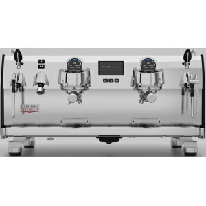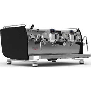 Кофемашина Victoria Arduino | Виктория Ардуино Maverick Gravimetric Volumetric T3 Gr2 220v matte black color. Кофемашина-автомат традиционная двугруппная (высота групп 100мм) с технологиями: T3 Genius (3 бойлера из нержавеющей стали: 1 паровой - 8л + 0,7л +0,7 л бойлер на каждую группу+ТЭН в каждой группе, уменьшенный вес группы ); Gravimetric (возможность запрограммировать вес напитка); жидкокристаллическим многофункциональным дисплеем TOUSHSCREEN, LCD дисплеем на каждую группу (показывает время экстракции), электронным контролем помола, независимым программированием температур групп, выбор варианта заваривания одним касанием; PureBrew Technology, которая обеспечивает возможность заваривания фильтр-кофе с помощью специально изготовленного холдера конической формы из нержавеющей стали (идет в стандартной комплектации); системой экстракции HEES (High Extraction Efficiency System), благодаря которой весь аромат, заключенный в кофейных зернах, попадает в чашку эспрессо; 2 кранами подачи пара "Cool Touch" из нержавеющей стали, которые остаются холодным и предотвращают появление ожогов при прикосновении, поворачиваются на 360; рычагами регулировки пара Push&Pull с электромагнитным клапаном и режимами подачи пара: непрерывной и 2 режимами ручной подачи пара разной мощности; запатентованной системой T.E.R.S (система рекуперации тепловой энергии) использует сбрасываемую воду для предварительного нагрева поступающей воды с помощью метода рециркуляции, что сводит к минимуму количество отходов; 1 краном подачи горячей воды с экономайзером (смесителем), манометром, электронными датчиками уровня и температуры воды в бойлере, контролем температуры PID через дисплей и других параметров машины; технологией Autopurge (автоматическая промывка сеточек групп перед приготовлением напитка, установлена в стандартно комплектации). Гидравлическая система включает в себя: встроенную волюметрическую помпу, манометр давления насоса и бойлера, автоматический индикатор уровня воды, предохранительный клапан, безвакуумный клапан, прессостат, внешнюю регулировку давления помпы. Машина имеет автоматическую программу мойки. Корпус выполнен из алюминия (боковые панели) и нержавеющей стали, цвет матовый черный с логотипом красного цвета на задней панели.