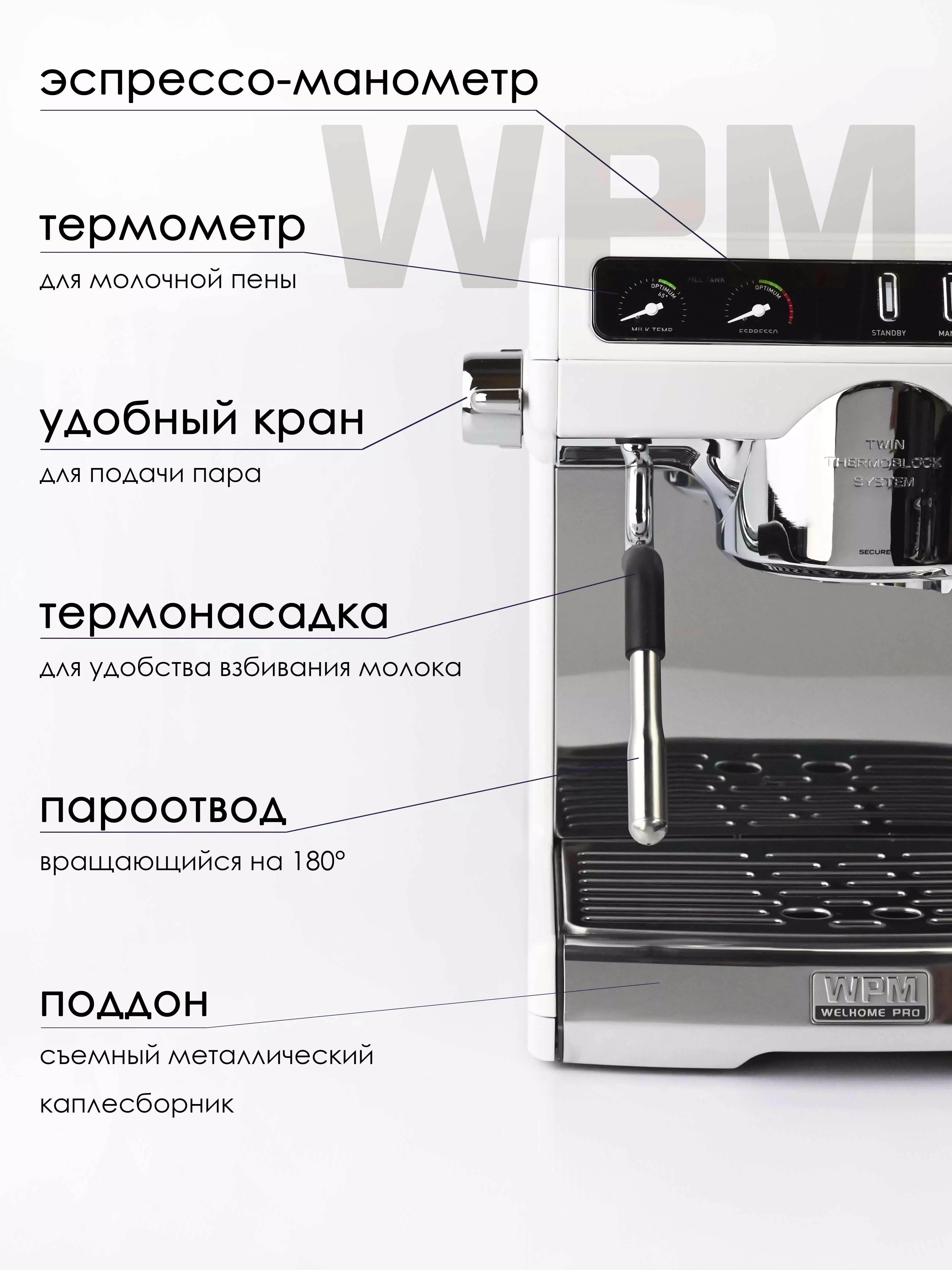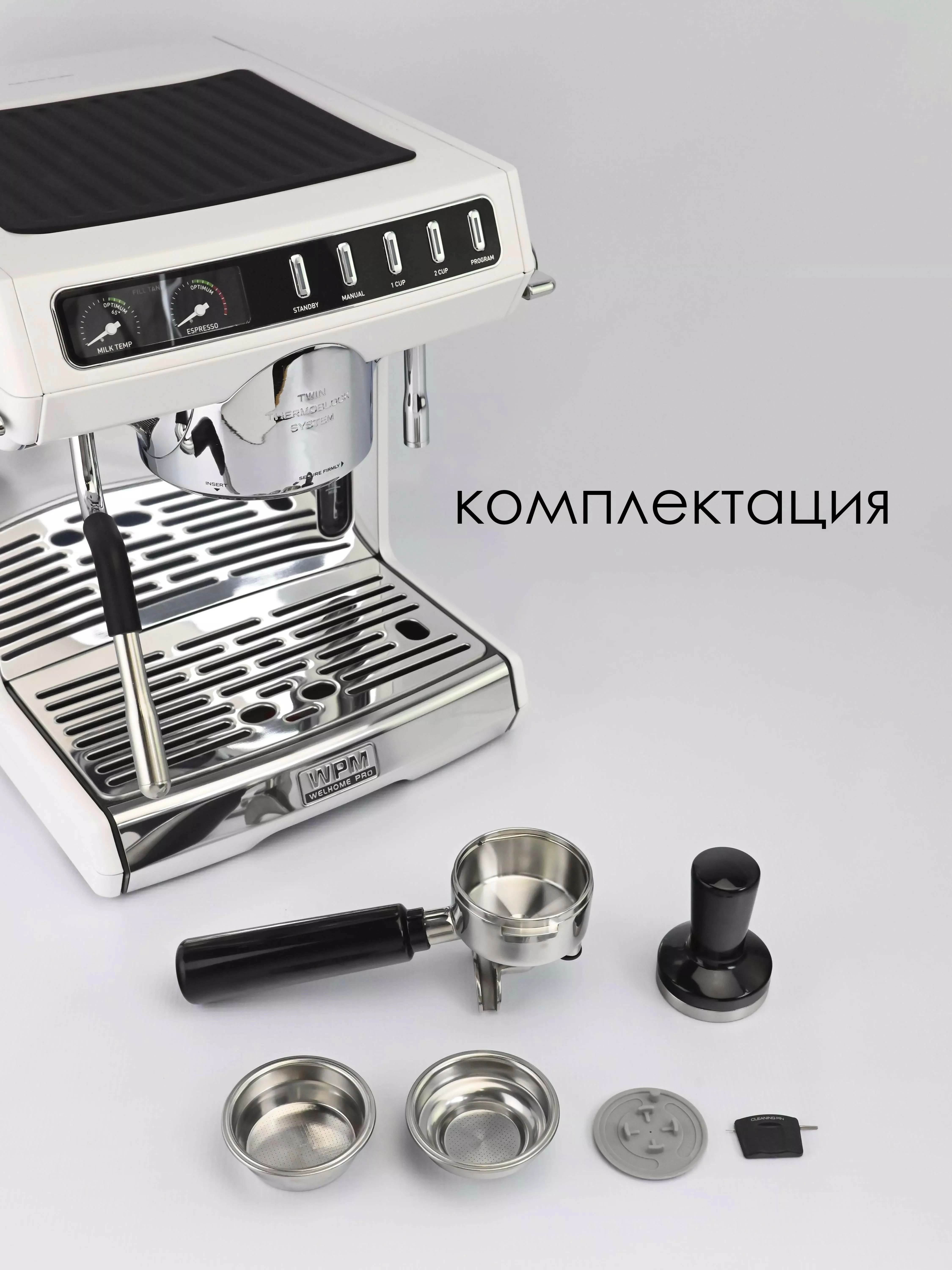 Кофемашина WPM KD-270SN белый - идеальный помощник для приготовления превосходного кофе в домашних условиях, небольшом баре или шоуруме. Благодаря удобному интерфейсу, премиальному дизайну и двум датчикам давления и температуры эта кофемашина для приготовления эспрессо станет вашим проводником в мир восхитительного кофе. Два термоблока, которые обеспечивают равномерный нагрев и позволяют одновременно готовить эспрессо и взбивать молоко без ущерба для стабильности температуры. Мощный насос на 15 бар для заварочной группы в сочетании с отдельным паровым насосом гарантирует постоянное давление воды и позволяет одновременно готовить кофе и использовать капучинатор. Дополнительное преимущество: датчик температуры встроен в стимер и данные по температуре молока выводятся на переднюю панель. Вы можете контролировать температуру молока в режиме реального времени, получая неизменно бархатистую пену для латте и капучино. Вы также можете настраивать температуру заваривания. По умолчанию WPM KD-270SN настроена на 92 °C, но вы можете изменить это значение, выбрав -2°C /-4°C или +2°C/+4°C. Настройка температуры заваривания в соответствии с типом кофе поможет вам получить наилучший вкус. Помимо температуры заваривания можно отрегулировать температуру и скорость пара для взбивания молока – все для идеальной пенки капучино. Заводская настройка позволяет получить мощный и сухой пар для текстурирования молока, но при желании температуру можно изменить до 10°C в большую или меньшую сторону с шагом в 5°C. Скорость включения парового насоса установлена на 0,3 сек, но ее тоже можно отрегулировать, сделав более сухой или более влажный пар. Шаг настройки скорости – 0,1 сек.