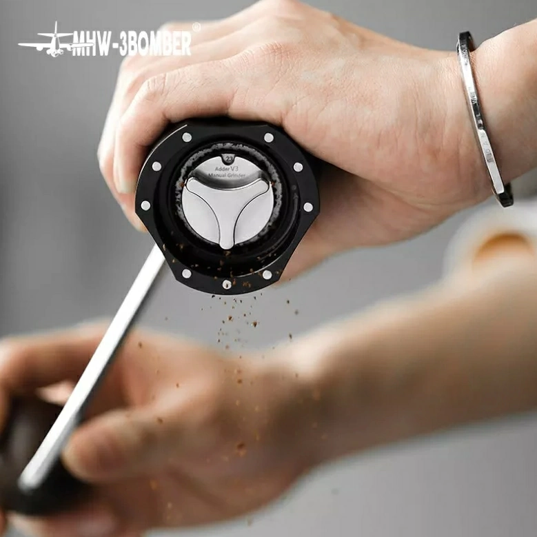 Кофемолка ручная MHW-3Bomber | МХВ-3Бомбер Adder V3. Жернова из нержавеющей стали Seven star с повышенной твердостью и усилием резания позволяет быстро и равномерно измельчать зерна, значительно снижает количество пыли и сохраняет оригинальный чистый вкус кофе.