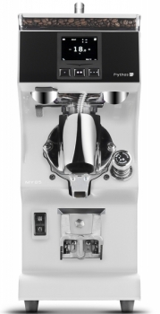 Кофемолка Victoria Arduino | Виктория Ардуино Mythos MY 85 white. Кофемолка-дозатор с дисплеем TOUCHSCREEN, со съёмным поддоном для отходов, имеет обновленный съемный прозрачный пластиковый загрузочный бункер в верхней части, улучшающий скольжение кофейных зерен в емкость для помола, электронный дозатор с мгновенным помолом, микрометрическую настройку помола, отображение и регулировка на экране дистанции между жерновами. Инновационная система контроля температуры жерновов CLIMA PRO имеет двойной вентилятор на задней панели для быстрого охлаждения мотора, улучшенная технология Clumb Crusher, обеспечивает равномерный помол, "без комков". Возможность использования кофемолки для альтернативного заваривания. Вместимость бункера - 1,5кг. Производительность - 15кг/ч. Диаметр жернова - 85мм, скорость помола - 4-5с. Возможность программирования до 3 порций и установки температуры непосредственно на экране кофемолки. Предусмотрено программирование отсрочки старта, безопасное извлечение бункера для зёрен, защита двигателя от перегрева. Помимо автоматической дозировки есть режим установки вручную и непрерывный режим работы. Захват для портафильтра удерживает портафильтр во время помола. Материал корпуса - нержавеющая сталь. Цвет корпуса - белый.
