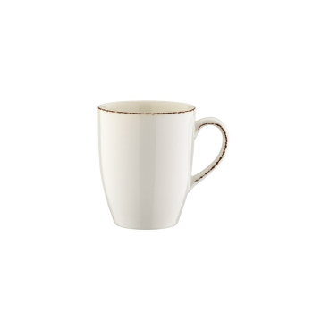 Кружка Bonna Retro | Бонна Ретро 330 мл коричневый край. Bonna — профессиональный твердый фарфор. В коллекции Retro контрастные цветные линии, нарисованные вручную по краю, что делает ее идеальной для повседневного ужина, в то же время она достаточно изысканная, чтобы стать ярким акцентом. Фарфор Bonna отличается своей прочностью, устойчивостью к сколам и механическим воздействиям, что делает его идеальным для профессионального использования. Все изделия можно мыть в посудомоечной машине и использовать в СВЧ-печах.