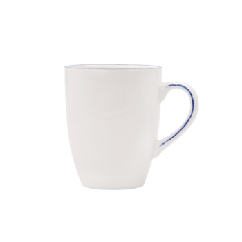 Кружка Bonna Retro | Бонна Ретро 330 мл синий край. Bonna — профессиональный твердый фарфор. В коллекции Retro контрастные цветные линии, нарисованные вручную по краю, что делает ее идеальной для повседневного ужина, в то же время она достаточно изысканная, чтобы стать ярким акцентом. Фарфор Bonna отличается своей прочностью, устойчивостью к сколам и механическим воздействиям, что делает его идеальным для профессионального использования. Все изделия можно мыть в посудомоечной машине и использовать в СВЧ-печах.