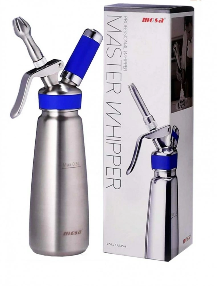 Кулинарный сифон Mosa 0.5 л - незаменимый инструмент бармена для приготовления коктейлей, взбивания сливок, муссов, такое устройство также подходит для приготовления блюд молекулярной кухни, изготовлен из качественной нержавеющей стали. Области применения: взбивание сливок, приготовление нежнейших соусов, муссов для салатов, закусок, десертов. Кремером также можно газировать напитки.