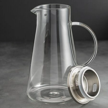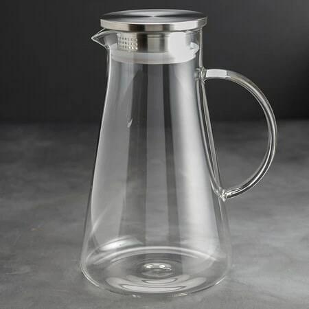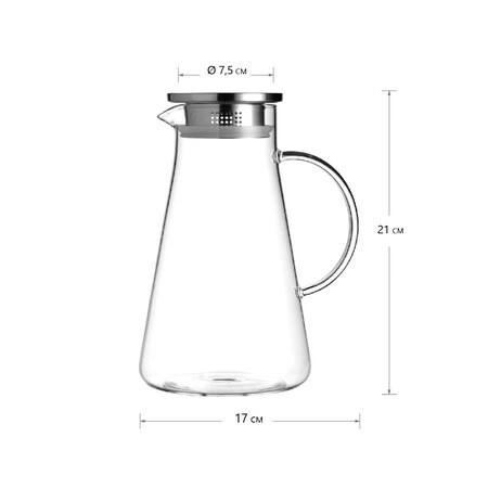 Кувшин LBS 1300 мл - высокий чайник стеклянный, конусовидной формы, с С-образной ручкой, с металлической крышкой с силиконовым ободком.