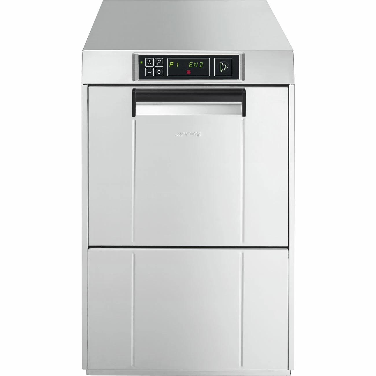 Машина посудомоечная Smeg | Смег Easyline SPG415S. Стаканомоечная машина под столешницу. 6 автоматических программ; 1 полностью программируемая программа; Программы самоочистки; Программа ополаскивания холодной водой. Максимальное количество тарелок в час: 480. Максимальное количество бокалов в час: 1500. Загрузка моющего средства: 1,5 л/ч. Загрузка ополаскивающего средства: 0,4 л/ч. Максимальная жесткость воды: 54°f - 30°dH. 5-ступенчатая система фильтрации. Объем моечного бака: 7 л. Объем бойлера: 4 л. Класс защиты: IPX4. Регулируемые по высоте ножки.