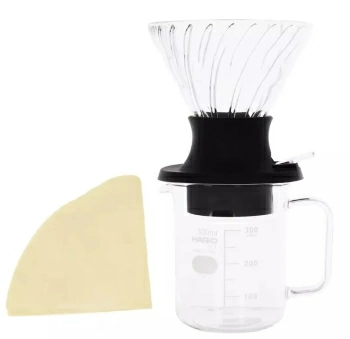 Набор Hario | Харио SSD-5012-В. В комплект входит иммерсионная воронка размера 02, стеклянный сервер из боросиликатного стекла на 300 мл, 40 фильтров. Практичный набор для быстрого и простого приготовления кофе, который объединил в себе 2 метода заваривания: капельный и иммерсионный. В отличие от классического заваривания методом pourover вода находится в длительном контакте с кофе, что раскрывает его вкус по особенному (более насыщенный, чем в классической воронке). В зависимости от рецепта время заваривания может составлять от 1 до 7 минут. Набор подходит как для использования в HoReCa, так и дома. Совместимые фильтры - конические, Hario V02 и аналогичные.