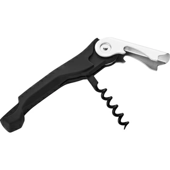 Нарзанник одноступенчатый Гидини 130 мм черный - обязательное приспособление для качественной работы сомелье, это штопор рычажного типа, имеет встроенную винтообразную открывалку и небольшой нож для срезания капсулы. Опорное колено упрощает процесс откупоривания бутылки. Одноступенчатый нарзанник имеет одну зазубрину на рабочей части или одно опорное колено.