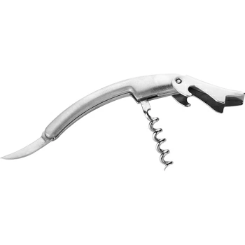 Нарзанник одноступенчатый Леопольд Виенна 100 мм - обязательное приспособление для качественной работы сомелье, это штопор рычажного типа, имеет встроенную винтообразную открывалку и небольшой нож для срезания капсулы. Опорное колено упрощает процесс откупоривания бутылки. Одноступенчатый нарзанник имеет одну зазубрину на рабочей части или одно опорное колено.