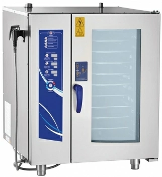 Пароконвектомат Chuvashtorgtekhnika ПКА 10-1/1ВМ2-01 инжекционного типа предназначен для приготовления различных блюд методом обработки паром и горячим воздухом по отдельности или комбинированно. Оснащена автомотической мойкой. Модель сочетает в себе надежность и производительность предыдущих предыдущих, а также ряд новых технических решений, которые делают его использование еще более удобным и легким.