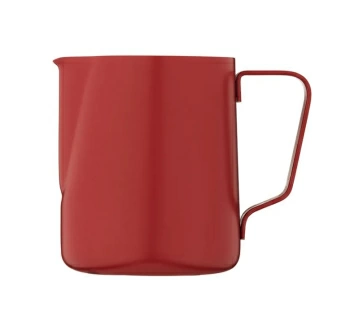 Питчер Doppio | Доппио 350 мл красный. Питчер для молока (молочник) – один из обязательных инструментов профессионального бариста. Предназначен для взбивания молока, при приготовлении капучино, латте и эспрессо-макиято. Бариста взбивает молоко при помощи пароотвода, которым оснащены эспрессо кофемашины.