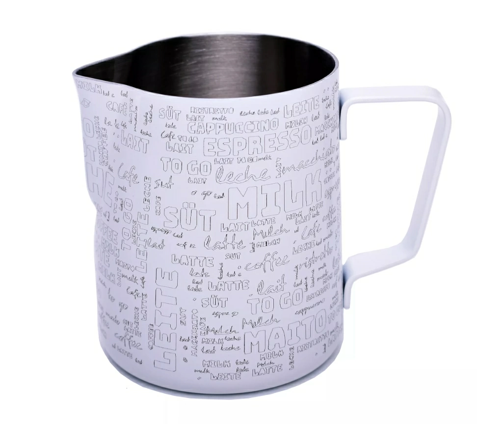 Питчер JoeFrex | ДжоеФрекс Milk Text 600 мл. Питчер для молока (молочник) – один из обязательных инструментов профессионального бариста. Питчер – молочник предназначен для взбивания молока, при приготовлении капучино, латте и эспрессо-макиято. Бариста взбивает молоко при помощи пароотвода, которым оснащены эспрессо кофемашины.