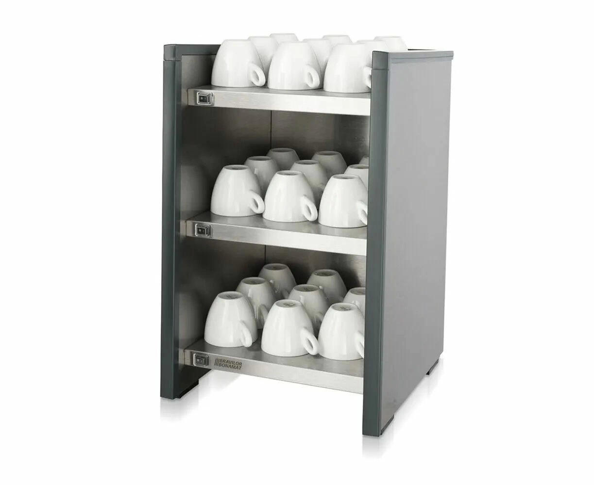 Подогреватель чашек Bravilor Bonamat | Бравилор Бонамат WHK. Совместимо с моделями всего модельного ряда кофемашин Bravilor Bonamat. Вмещает до 120 чашек для эспрессо. При наливании горячего кофе в холодный фарфор теряется слишком много тепла. Это отрицательно влияет на вкус. В предварительно подогретых чашках вкус и аромат приготовленного эспрессо и других кофейных напитков сохраняется дольше. Более того, подогреватель чашек Bravilor Bonamat универсален. Он избавить вас от необходимости тратить время на вытирание чашек после мытья, удалит остатки запахов с посуды. Также его можно использовать не только для кофейных чашек, но и других кухонных аксессуаров. 3 нагревательные полки: каждую можно включать и выключать отдельно.