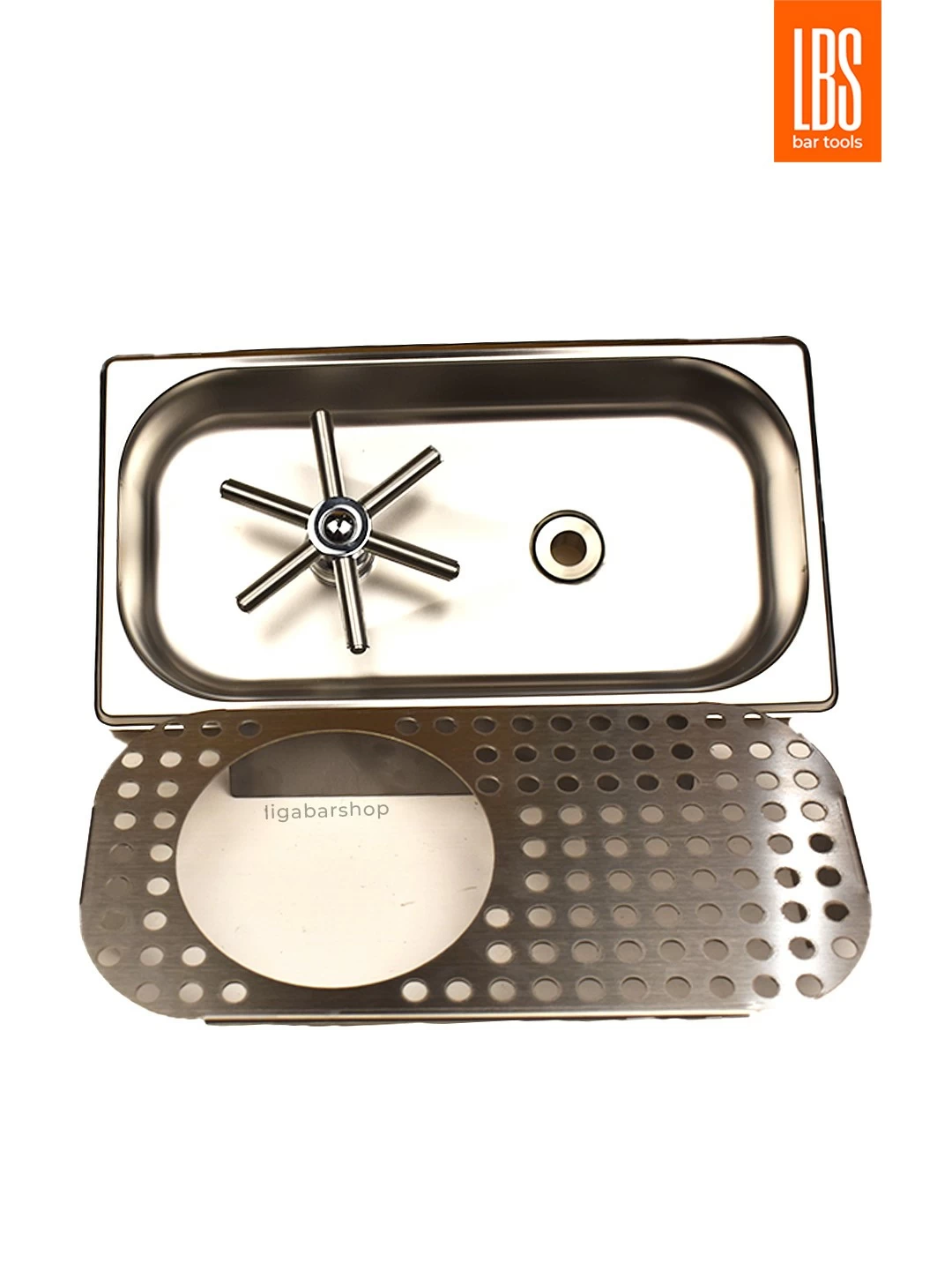 Ринзер LBS встраиваемый с каплесборником 325x160x65 мм. Омыватель бокалов, пичеров, стаканов подойдет для кофейни, кафе, ресторанов, баров. Работает от нажатия, увеличивая давление водопровода. Экономит воду. Увеличивает скорость работы.