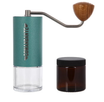 Ручная кофемолка Comandante C40 Nitro Blade Alpine Lagoon - профессиональная ручная кофемолка для ценителей кофе и качественных вещей. Это премиальная ручная кофемолка очень высокой производительности с усовершенствованным дизайном жерновов. Новая версия MK4 с коническими высокоэффективными стальными жерновами, точная регулировка степени помола и качественные материалы сделают помол кофе приятным процессом. Кофемолки Comandante полностью производятся в Германии и известны среди знатоков своим легендарным качеством, лучшим на рынке ручных кофемолок с жерновами. Помол широкого спектра: от турки (в пыль) до крупного френч-пресса и Кемекс.