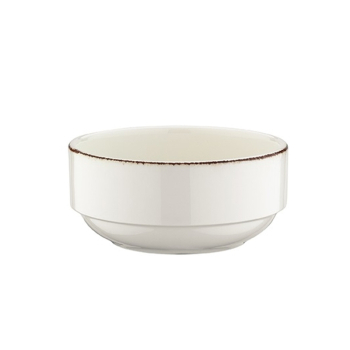 Салатник Bonna Retro | Бонна Ретро 350 мл коричневый край, форма Банкет. Bonna — профессиональный твердый фарфор. В коллекции Retro контрастные цветные линии, нарисованные вручную по краю, что делает ее идеальной для повседневного ужина, в то же время она достаточно изысканная, чтобы стать ярким акцентом. Фарфор Bonna отличается своей прочностью, устойчивостью к сколам и механическим воздействиям, что делает его идеальным для профессионального использования. Все изделия можно мыть в посудомоечной машине и использовать в СВЧ-печах.